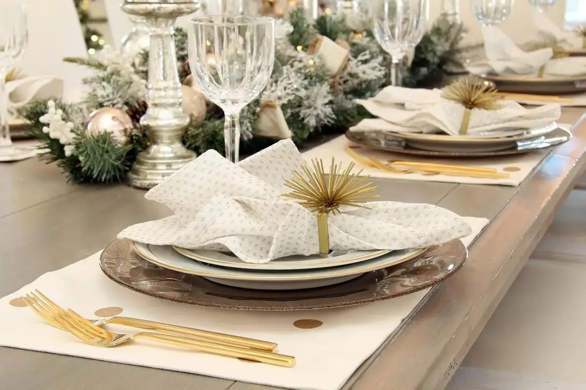 Que este Natal seja com luzes coloridas piscantes, boas gargalhadas, aromas e sabores. Que seja com muitas texturas, cores e, é claro, que não poderiam faltar as louças especiais para este dia mágico, que podem ser compostas por metais, não só de talheres mas, de adornos acobreados, prateados e dourados, com todo o charme e a elegância do espírito natalino. Mas acima de tudo, esta mesa será embelezada com pessoas felizes e iluminadas.