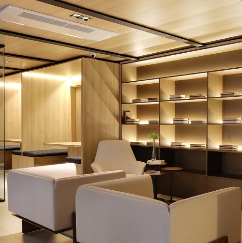Móveis planejados também incluem a criação de áreas de leitura confortáveis e convidativas. Poltronas, sofás e mesas de apoio podem ser dispostos de maneira a promover o conforto do leitor, incentivando momentos de imersão e relaxamento.