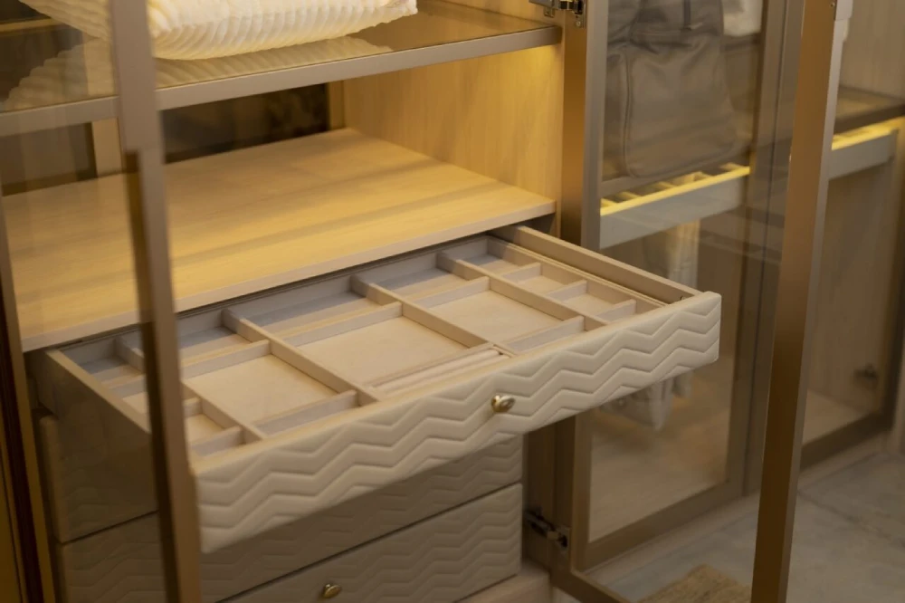 A Criare está sempre atenta às últimas tendências em design de interiores, e nossos closets abertos não são exceção. Em 2024, as cores neutras como branco, cinza e bege continuam em alta, mas cores mais ousadas como verde musgo, azul petróleo e a cor Panetone 2024 ‘Peach Fuzz’ também ganham espaço. Acabamentos foscos e texturizados estão em alta, assim como a integração de tecnologias como iluminação LED com sensor de presença e sistemas de abertura automática de gavetas.