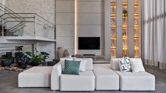 Projetos que maximizam a entrada de luz natural tornam os ambientes mais aconchegantes e econômicos. Além disso, móveis com acabamentos que refletem a luz de forma suave, como superfícies em madeira clara, ajudam a distribuir melhor a luminosidade, realçando a sensação de frescor e bem-estar.